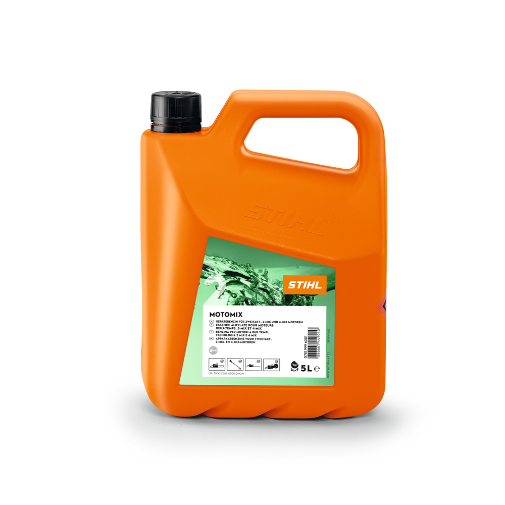 Le MotoMix, carburant prêt à l’emploi, est destiné aux moteurs 2 temps et 4Mix. Il est pré dosé en huile HP Ultra à 2% : pas de risque d’erreur de dosage ! Composé d’huile HP Ultra biodégradable, il est respectueux de l’environnement et de la santé de l’homme. Grâce à sa formule unique « Made by STIHL », il augmente les performances et la longévité du moteur. Le MotoMix assure un démarrage très facile après un remisage hivernal ou après une longue période d’inutilisation. Pratique, le carburant MotoMix garantit une qualité stable du mélange pendant 5 ans.