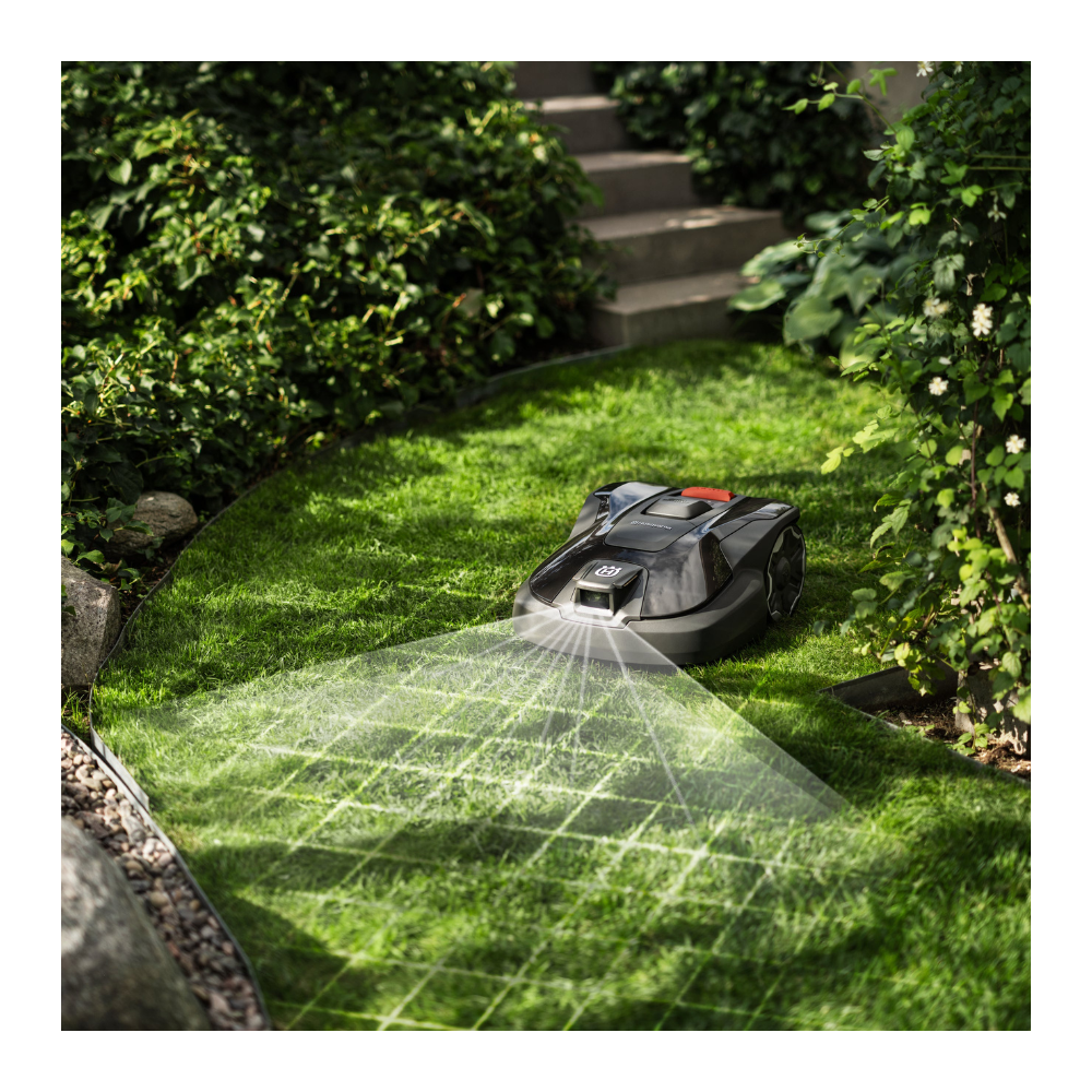 La caméra intégrée utilise l'IA pour détecter et identifier les objets sur la pelouse, garantissant ainsi que le robot tondeuse évite les collisions. En outre, la technologie de vision par IA est associée à la navigation par satellite, offrant une couverture complète de la pelouse (tant qu'elle détecte de l'herbe), même dans les zones où les signaux satellites sont faibles.