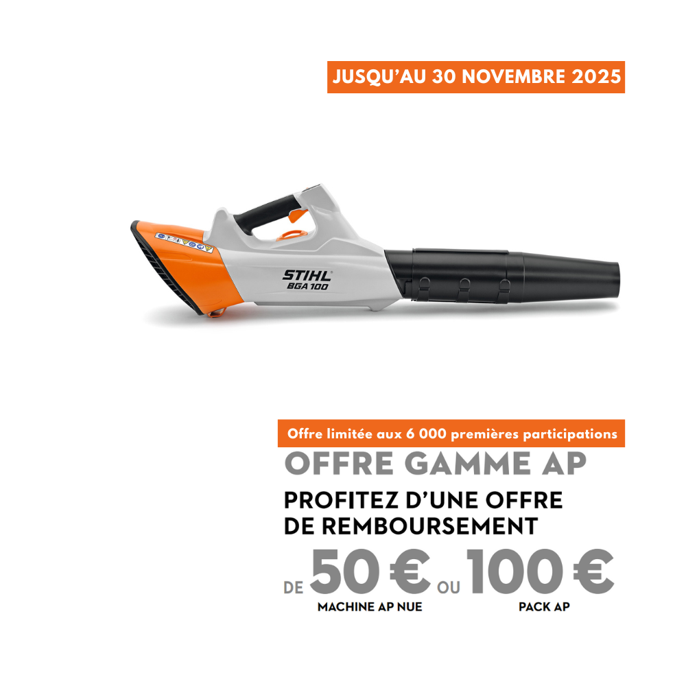 Sous réserve des stocks disponibles. Cette offre est accessible dans la limite des 6 000 premières participations reçues par STIHL. Modalités complètes et participation sur : https://www.stihl-promo.fr/
