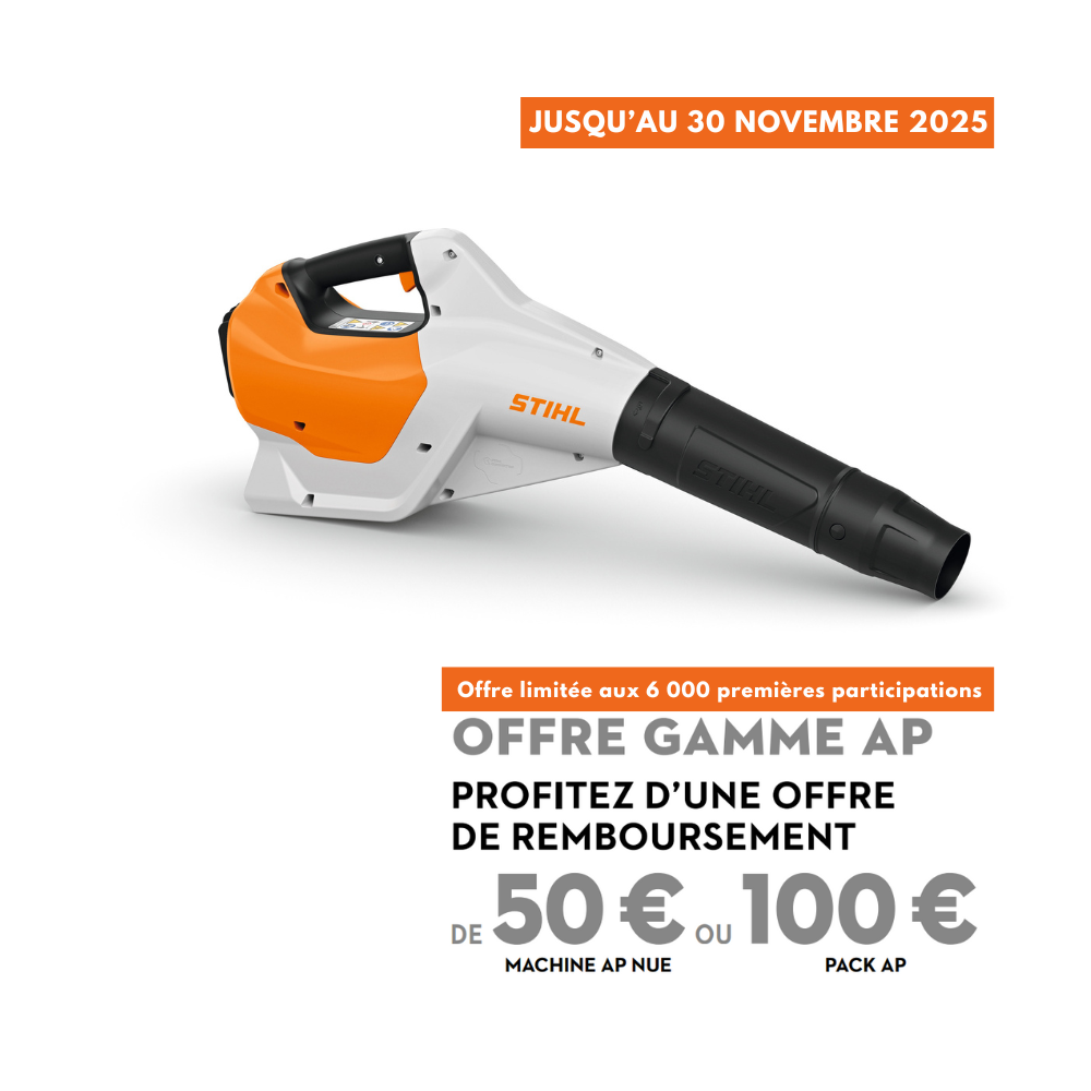 Sous réserve des stocks disponibles. Cette offre est accessible dans la limite des 6 000 premières participations reçues par STIHL. Modalités complètes et participation sur : https://www.stihl-promo.fr/