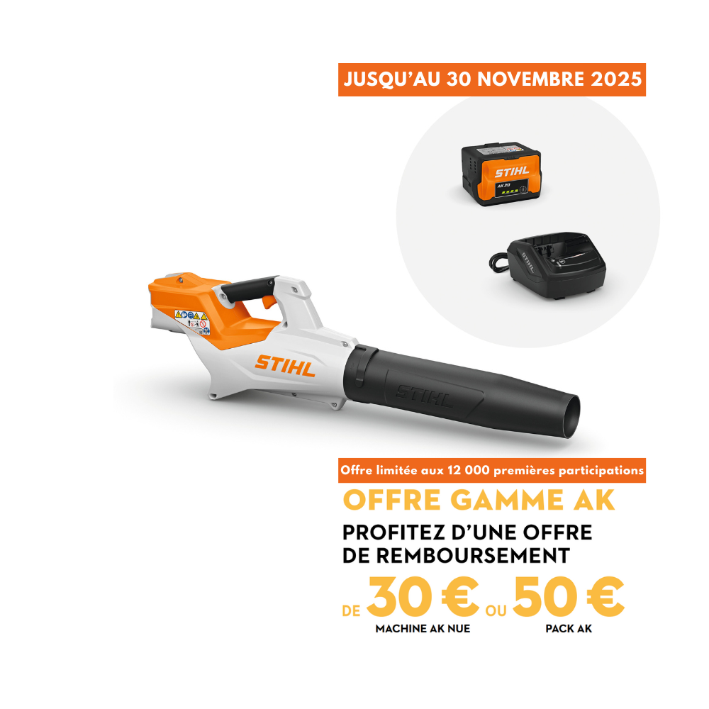 Offre valable pour tout achat réalisé entre le 1er septembre 2025 au 30 novembre 2025 d’une machine nue (produit seul) ou d’un Pack ( un produit + une batterie + un chargeur ou un produit + un set de démarrage) de la GAMME AK SYSTEM.