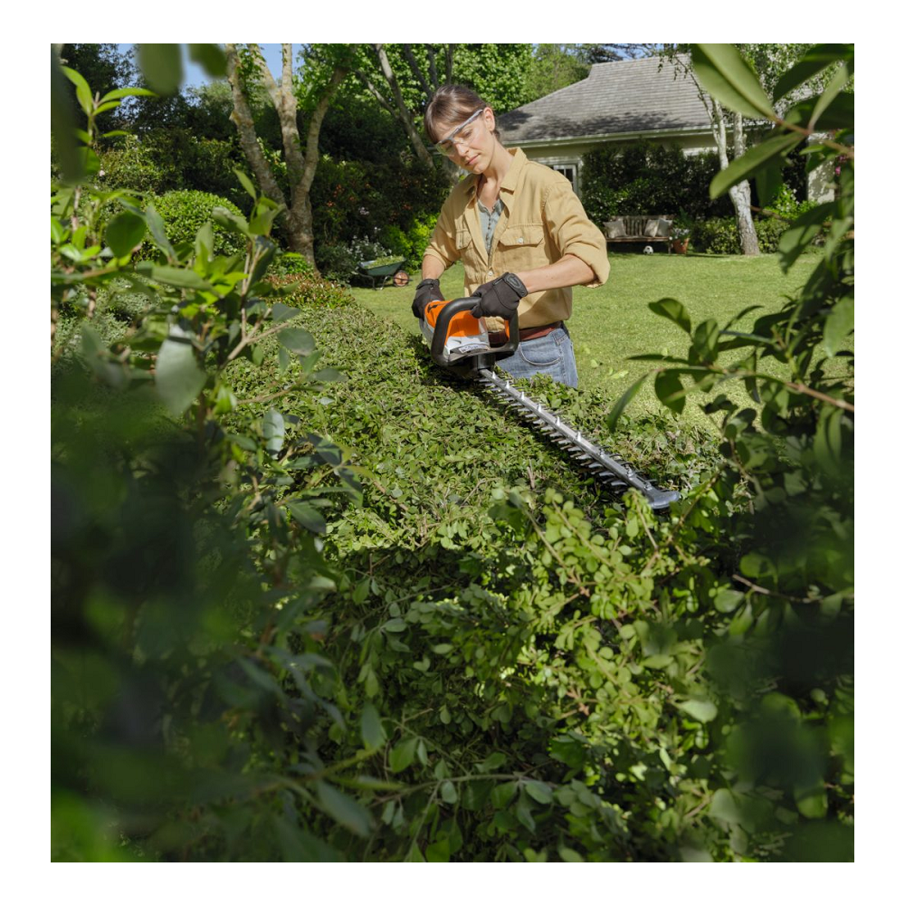 - Silencieux : ne nécessite pas de protection auditive et peut être utilisé dans les zones sensibles au bruit. Jusqu’à 50% plus silencieux que le taille-haie HSA 66 grâce au moteur EC.