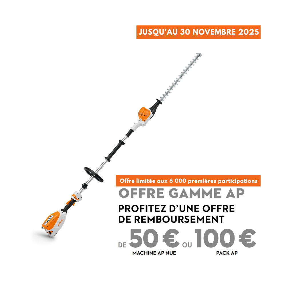 Sous réserve des stocks disponibles. Cette offre est accessible dans la limite des 6 000 premières participations reçues par STIHL. Modalités complètes et participation sur : https://www.stihl-promo.fr/