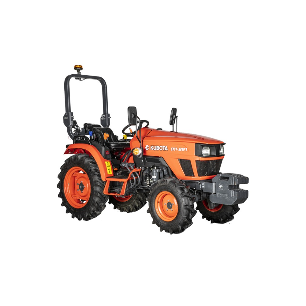 Le tracteur Kubota EK 1261 DT est un tracteur compact et maniable capable de réaliser tous types de travaux agricoles tels que la préparation du sol, l'entretien d'espaces verts et le maraîchage.